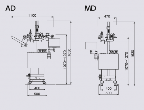 There are two types of machine vision devices: the AD type self-feed products with drive motor and the MD type separate-pull products without drive motor. The MD type is available as a type that is directly attached to the winding machine or as a stand-independent type.